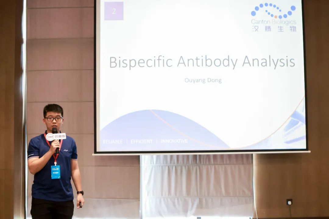汉腾生物理化分析经理欧阳东受邀出席交流会并在会上做了“双抗的质量分析”的主题报告。在论坛会上与各位同仁讨论了双抗行业发展现状以及开发中相关技术问题和解决方案。基于不同双抗的结构特点,工艺开发中可能会存在不同的风险。比如,非对称双特异性抗体、对称双特异性抗体分别会出现错误配对及碎片和聚集的问题。在分析检测过程中,可以根据结构特点制定不同的分析策略来监测关键质量属性(CQAs),为工艺开发提供进一步的指导。