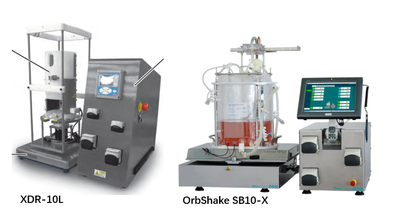 汉腾生物拥有国内独有的环轨摇晃式生物反应器平台,该平台具有低剪切力,高氧传质效率,并具有良好的摇瓶至2500L规模放大一致性等优点。同时由于特殊的培养方式,该平台适合对剪切力敏感的蛋白生产(包括重组蛋白,双抗等)。本案例中切换至10L环轨摇晃式反应器(OrbShake SB10-X),相对传统10L搅拌式反应器(XDR-10L),表达量提升50%;另外,在OrbShake SB10-X放大至OrbShake SB50-X中,单位体积内表达量也提高了20%。